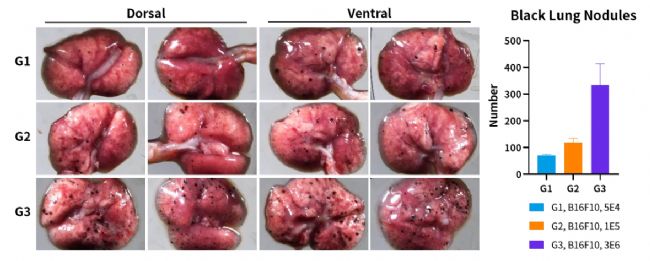 通過(guò)尾靜脈注射腫瘤細(xì)胞,細(xì)胞首先經(jīng)過(guò)肺部毛細(xì)血管網(wǎng),隨后進(jìn)入全身動(dòng)脈循環(huán),引發(fā)廣泛的轉(zhuǎn)移灶。但由于腫瘤細(xì)胞直徑相對(duì)較大(20-30μm),易被毛細(xì)血管(管徑~8μm)聚集,它們常在肺部受阻導(dǎo)致形成肺部轉(zhuǎn)移,也可能隨后轉(zhuǎn)移到其他遠(yuǎn)處器官。此模型適用于模擬腫瘤通過(guò)血液途徑的轉(zhuǎn)移,或用于血液癌癥和肺轉(zhuǎn)移的研究。