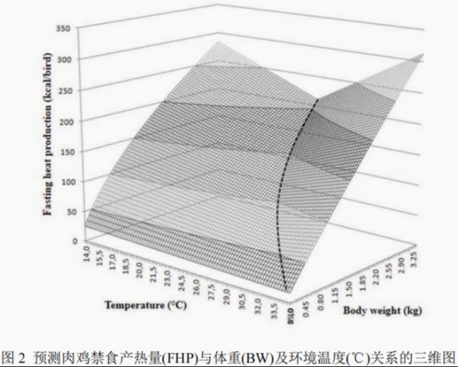 該研究團隊在《Livestock Science》發(fā)表的另外一項研究成果,深入分析了肉雞的能量維持需求。同樣使用間接量熱系統,研究不同日齡和體重的肉雞被暴露在15至36攝氏度的不同環(huán)境溫度下禁食產熱量(Fasting Heat Production, FHP)。