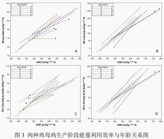 研究發(fā)現,肉雞的禁食熱產生(FHP)在整個生產周期中保持不變,與能量攝入量無關。此外,隨著肉雞年齡的增長,體內能量用于沉積蛋白質和脂肪的效率發(fā)生了變化。研究還提出了適用于肉雞的代謝能(ME)和凈能(NE)需求的混合模型。