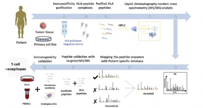 圖1. 基于質(zhì)譜技術(shù)對(duì)腫瘤患者免疫肽譜分析的工作流程[1]