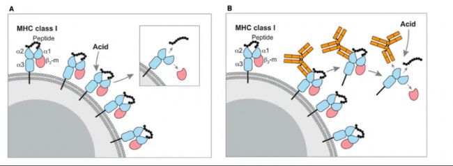 圖2. MHC與肽段復(fù)合物的分離方法:酸洗脫(MAE)和免疫沉淀(IP)[2]