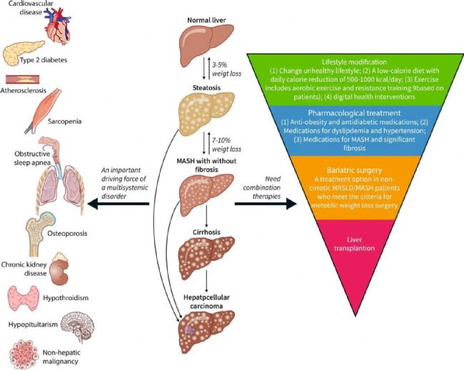 Fig.2 MASLD as an important driving force of multisystemic disorders and its management[5].