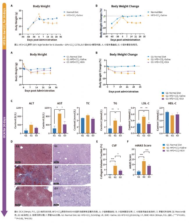 GAN(Gubra-Amylin NASH)飲食是一種經過改良、無反式脂肪的高脂高膽固醇高果糖飼料,其誘導的MASH動物模型更好地模擬了人類疾病的發(fā)生,在生理、代謝和組織病理學方面有良好的轉化性。