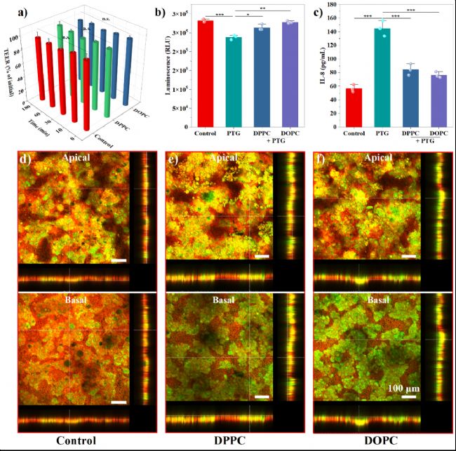 DPPC囊泡和DOPC囊泡均能增加腸道黏液屏障特性。