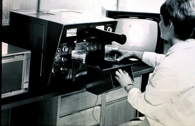 圖 1:QTM B,1963 年,第一套用于顯微鏡圖像的商用自動圖像分析系統(tǒng),以電視攝像機為基礎(chǔ),由英國劍橋的 Metals Research 公司開發(fā)。