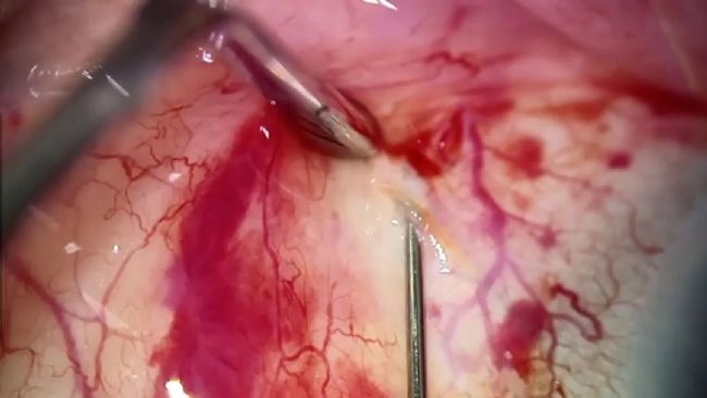圖 1:檢查結(jié)膜下舊支架后發(fā)現(xiàn)周圍有腱鞘組織。圖片由華盛頓大學(xué)醫(yī)學(xué)院醫(yī)學(xué)博士 Arsham Sheybani 提供。