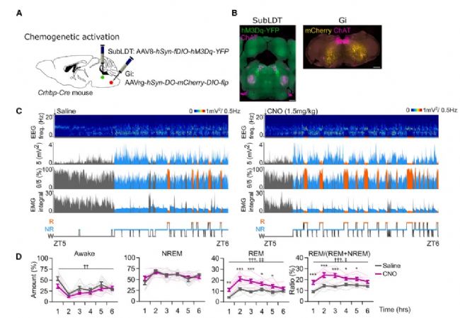 圖2、激活CRHBP-SubLDT→Gi環(huán)路促進(jìn)REM