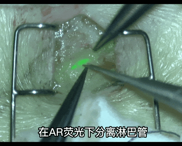 第二步,探查淋巴管,通過血管熒光功能來完成這一步,AR熒光(GLOW800)可以做到在白光下仍然可以分辨出淋巴管,做到雙驗證。