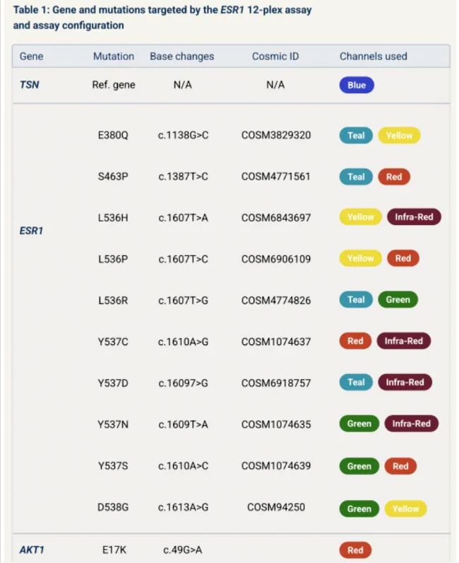 采用革命性的熒光組合-ESR1 12-plex數(shù)字PCR方法,NioTM+全自動數(shù)字PCR一體機系統(tǒng)和Ruby芯片聯(lián)合,實現(xiàn)單個樣本中12個靶標進行絕對定量檢測,可實現(xiàn)單孔12靶點檢測。詳細信息如下: