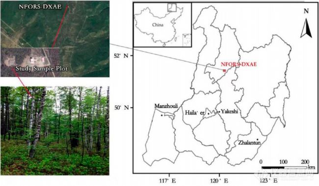 圖1. 內(nèi)蒙古自治區(qū)大興安嶺生態(tài)系統(tǒng)國家野外科學(xué)觀測研究站研究區(qū)位于中國東北大興安嶺北部。
