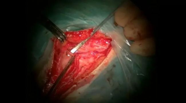 進(jìn)行翼點(diǎn)開顱手術(shù),然后通過外側(cè)裂進(jìn)行蛛網(wǎng)膜下腔解剖。