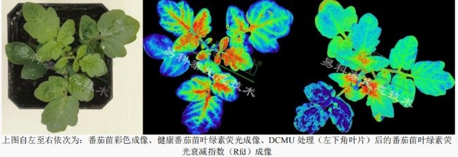 DCMU作為光合作用電子傳遞鏈阻斷劑,廣泛用于植物脅迫模擬研究、葉綠素?zé)晒饧夹g(shù)研究等,DCMU處理的植物不能進(jìn)行光合作用電子傳遞,多余能量導(dǎo)致葉綠素?zé)晒獾脑鰪?qiáng)(光化熒光淬滅降低或消失)(M.Rossini, etc. 2015. Red and far red Sun-induced chlorophyll Fluorescence as a measure of plant photosynthesis. Geophysical Research Letters),通過(guò)葉綠素?zé)晒獬上窦夹g(shù),十幾分鐘后即可靈敏檢測(cè)到施藥部位光合作用降低、葉綠素?zé)晒庠龈摺?