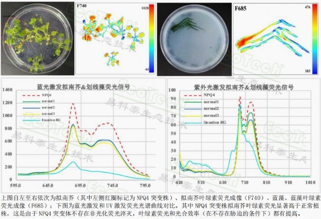 ®多功能高光譜成像技術(shù)和葉綠素?zé)晒獬上窦夹g(shù),對(duì)瓊脂培養(yǎng)藍(lán)藻和擬南芥(中國(guó)科學(xué)院植物研究所提供)進(jìn)行的成像分析結(jié)果: