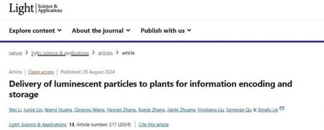 11. Delivery of luminescent particles to plants for information encoding and storage (Light: Science & Applications, IF=20.6)