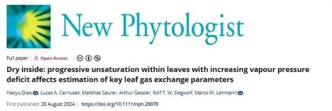 12. Dry inside: progressive unsaturation within leaves with increasing vapour pressure deficit affects estimation of key leaf gas exchange parameters (New Phytologist, IF=8.3)