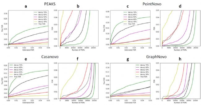 總體而言,不同的從頭測序算法都各有不同,需要根據(jù)每個算法的模型和評分機制調(diào)整decoy spectrum的生成策略和參數(shù)。