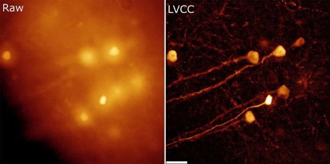 對比噪聲比越好,重建結(jié)果就越好。對于圖 10 中所示的例子,使用了大體積Computational Clearing(LVCC),這是一種Computational Clearing和自適應(yīng)去卷積的結(jié)合,用于成像厚樣本體積。在樣本的上層,甚至最細微的細節(jié)都能被解析并進行分割。盡管在更深層次的分辨率和分割可能會降低,但在樣本深度為 140 到 150 微米(圖 11)時,顯示出大量有價值的細節(jié),這些細節(jié)在原始數(shù)據(jù)中并未顯現(xiàn)。沒有THUNDER,大多數(shù)寬場成像實驗在 50 微米的深度就停止,因為人們認為無法獲取更多信息。