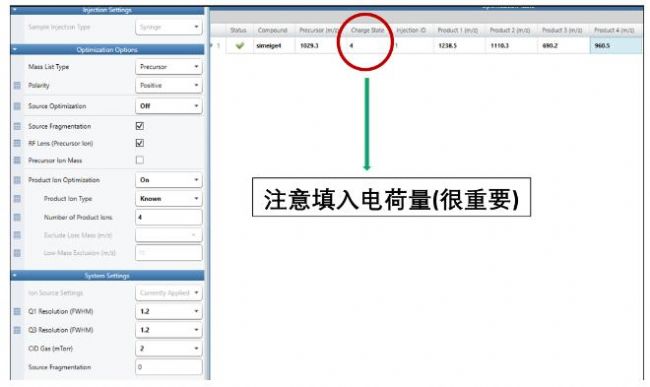 司美格魯肽4電荷態(tài)下TSQ Plus系列質(zhì)譜優(yōu)化界面(注意電荷量)