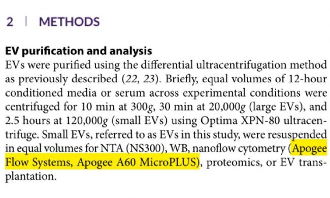 英國(guó)Apogee超靈敏納米流式分析儀,專為外泌體微囊泡(EVs)等小顆粒分析優(yōu)化設(shè)計(jì),在EVs樣品顆粒大小分析,絕對(duì)定量,多標(biāo)記物同時(shí)快速分析工作中廣泛應(yīng)用。截止目前,該設(shè)備已累計(jì)參與數(shù)百篇高質(zhì)量同行審議文章相關(guān)實(shí)驗(yàn)分析工作。其出色的靈敏度,穩(wěn)定性及可靠性已備受業(yè)內(nèi)廣泛認(rèn)可,并將繼續(xù)為EVs相關(guān)基礎(chǔ)研究及轉(zhuǎn)化應(yīng)用提供堅(jiān)實(shí)支持。