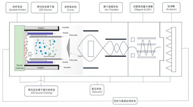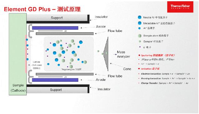輝光放電質(zhì)譜法(Glow Discharge Mass Spectrometry, GD-MS),利用輝光放電源作為離子源,與質(zhì)譜分析器聯(lián)接進(jìn)行質(zhì)譜測定的一種分析方法。