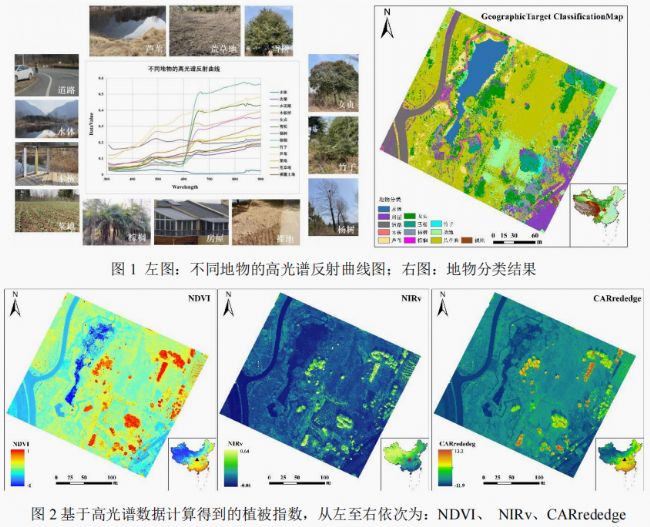 通過(guò)不同地物光譜差異實(shí)現(xiàn)的土地覆蓋類型結(jié)果良好, 與地面調(diào)查基本一致。其中荒草地占地最廣,約占44.7%,落葉闊葉樹(shù)占地最少,僅為5.1%;另外根據(jù)植被指數(shù)可知, NDVI、NIRv可有效區(qū)分樹(shù)木與其他地物,CARrededge可以區(qū)分女貞與雪松兩類常綠樹(shù)。
