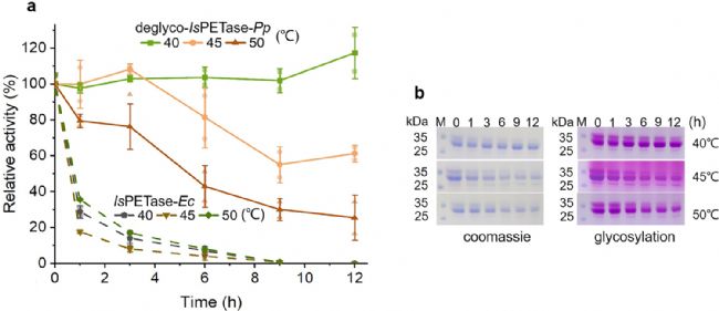 部分脫糖IsPETase-Pp的催化活性和熱穩(wěn)定性