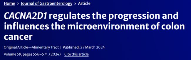 鑒于此,日本京都府立醫(yī)科大學(xué)消化外科的課題組在最近的研究中探討了鈣通道對癌癥的作用,闡釋了 CACNA2D1 在調(diào)控 CC 患者腫瘤進(jìn)展中的作用及其臨床病理意義,還討論了 CACNA2D1 表達(dá)與基質(zhì)之間的關(guān)系及其對癌癥微環(huán)境的影響。研究表明,CACNA2D1 在腫瘤進(jìn)展中起著至關(guān)重要的作用,并影響結(jié)腸癌患者的微環(huán)境。研究成果發(fā)表在 Journal of Gastroenterology 期刊題為“CACNA2D1 regulates the progression and influences the microenvironment of colon cancer”。