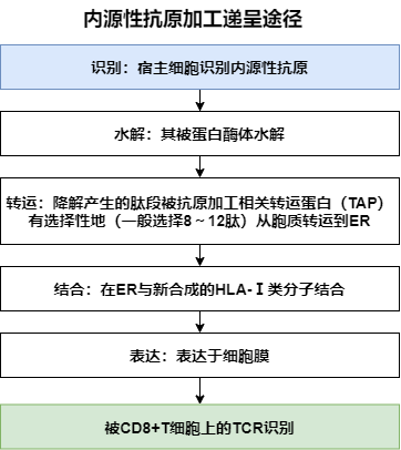 1.在內(nèi)源性抗原呈遞中,抗原首先被蛋白酶體降解為多肽片段,然后與MHC I類分子結(jié)合,最終呈遞給CD8+ T細(xì)胞。