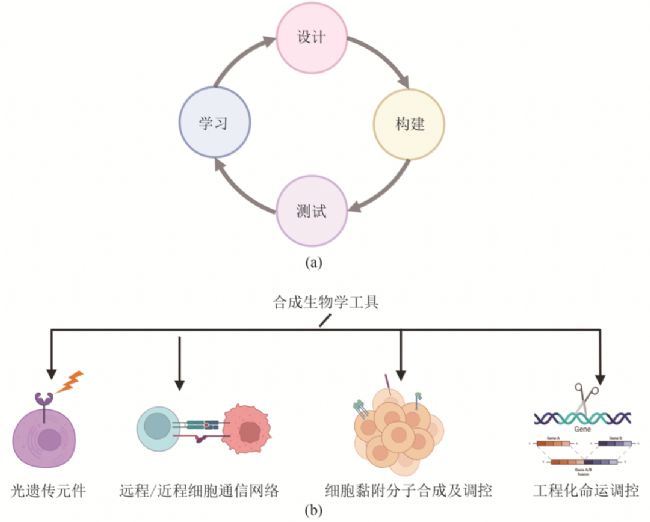 圖3 合成生物學研究路線(a)與常見的合成生物學工具(b)