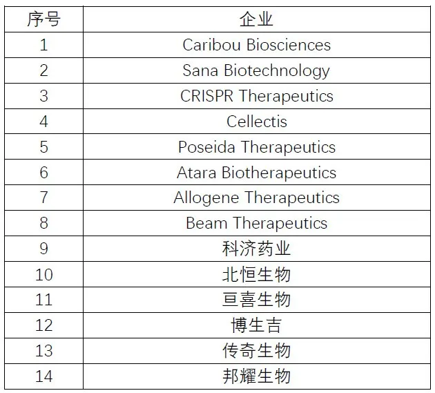 附表 全球范圍內(nèi)布局通用型CAR-T療法的代表企業(yè)