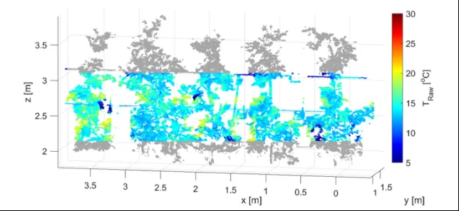 圖2 利用激光雷達(dá)和熱傳感器分析冠層內(nèi)的三維空間溫度分布