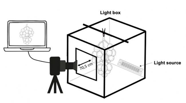 葡萄簇結(jié)構(gòu)和緊湊度是影響產(chǎn)量、品質(zhì)和對病蟲害的敏感性的重要果實性狀。簇結(jié)構(gòu)與簇緊湊度直接相關(guān),簇緊湊度描述了漿果占據(jù)的體積與總簇體積之間的比率。集群結(jié)構(gòu)決定了漿果在集群中的排列和自由空間的分布,集群結(jié)構(gòu)復(fù)雜,難以定量測量,果軸分枝方式受漿果數(shù)量、大小、形狀、空間位置等因素的影響。雖然可以通過觀察聚類輪廓來識別聚類結(jié)構(gòu)的某些特征,但更精確的分析需要對聚類內(nèi)的單個漿果進行識別和空間定位。