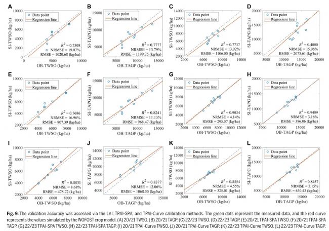 研究團(tuán)隊(duì)通過對我國湘南主要油菜產(chǎn)區(qū)進(jìn)行為期兩年的田間數(shù)據(jù)采集和分析,考慮到非葉片綠色器官的光合作用,提出了總光合面積指數(shù) (TPAI) 作為模型校準(zhǔn)的替代變量;并基于總光合面積指數(shù)TPAI,提出了兩種新型參數(shù)校準(zhǔn)方法:基于總光合面積指數(shù)和比角果面積的方法 (TPAI-SPA) 和基于總光合面積指數(shù)和曲線擬合的方法 (TPAI-Curve) 。所提總光合面積指數(shù)TPAI和校準(zhǔn)方法突破了傳統(tǒng)通用作物生長模型依賴于葉面積指數(shù) (LAI) 作為校準(zhǔn)參數(shù)的局限性,可以更全面地反映油菜生長過程中光合器官作用和演替的復(fù)雜性。研究結(jié)果符合作物產(chǎn)量形成的農(nóng)學(xué)機(jī)理,即油菜的莢果在生長后期逐漸成為主要的光合器官,莢果的光合作用在增產(chǎn)中發(fā)揮著重要作用。因此,考慮莢果光合作用對提高油菜產(chǎn)量估算的準(zhǔn)確性至關(guān)重要。