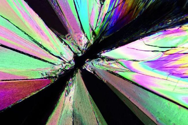 圖 5:用偏光顯微鏡拍攝的酒石酸晶體。酒石酸是一種天然存在的二元醛羧酸,主要存在于葡萄中。