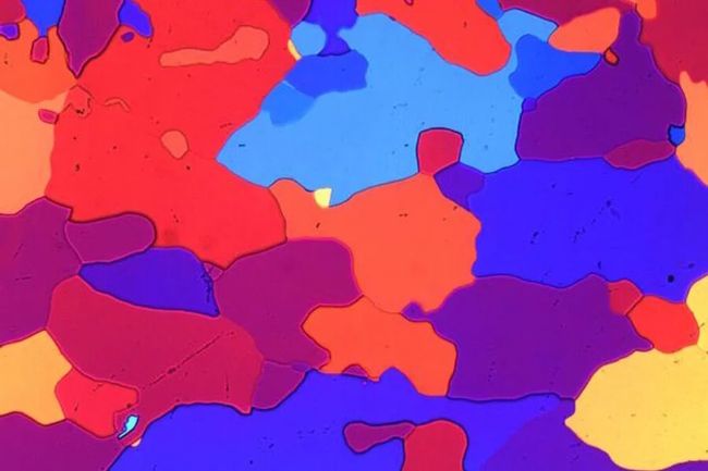 圖 4:鈷,冷軋,貝拉哈刻蝕,偏光。微觀結(jié)構(gòu)形態(tài)的檢查在材料科學(xué)和失效分析中起著決定性作用。在偏光顯微鏡下對(duì)刻蝕樣品進(jìn)行光學(xué)偏振,往往可以增強(qiáng)顏色對(duì)比度和特定的微觀結(jié)構(gòu)形態(tài)。由德國(guó)普福爾茨海姆大學(xué)的 Ursula Christian 提供。