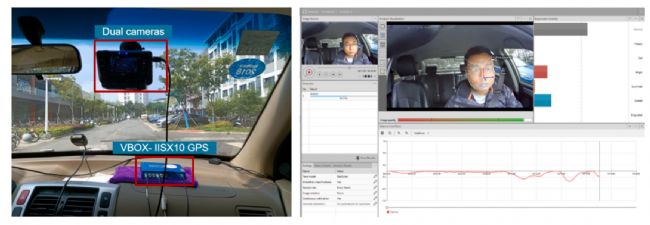 實(shí)驗(yàn)選擇在駕駛員的正常工作時(shí)間進(jìn)行測(cè)試,有利于駕駛員迅速進(jìn)入正常的駕駛狀態(tài)。實(shí)驗(yàn)設(shè)備包括VBOX- IISX10 GPS和雙攝像頭(前置和后置),分別安裝在車(chē)輛前儀表盤(pán)和擋風(fēng)玻璃上(圖1),以測(cè)量高精度的車(chē)輛運(yùn)動(dòng)學(xué)數(shù)據(jù),如位置、速度、加速度等,以及記錄司機(jī)的面部表情。使用諾達(dá)思的面部表情分析系統(tǒng)(FaceReader)分析司機(jī)的面部表情以獲得情緒數(shù)據(jù)(Iridiastadi, 2019)。