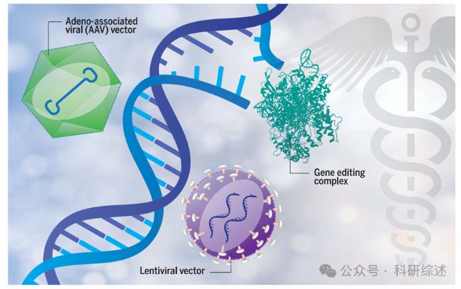 圖2. 用于人類基因治療的三種基本工具 [2]。腺相關(guān)病毒(AAV)和慢病毒載體是最近獲得批準(zhǔn)的多種基因療法的基礎(chǔ);蚓庉嫾夹g(shù)目前還處于轉(zhuǎn)化研究和臨床應(yīng)用的初期階段,但預(yù)計(jì)將在該領(lǐng)域發(fā)揮越來(lái)越重要的作用。