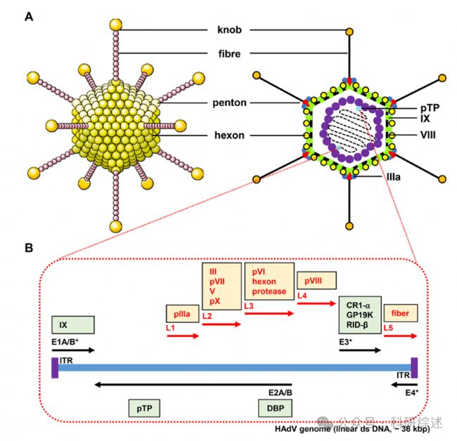 圖3. 腺病毒的結(jié)構(gòu)和基因組組織 [3]
