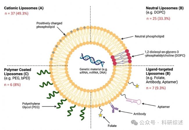 圖9. 針對(duì)基因治療使用的不同類型脂質(zhì)體的研究分布情況[8]
