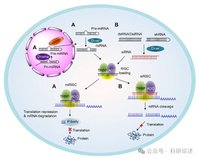圖12. miRNA(a)和siRNA(b)的工作機(jī)制示意圖 [11]