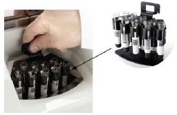 1.將樣品管或樣品杯插入到樣品架內(nèi)。確保試劑瓶上的條形碼可從樣品架的開(kāi)口讀取。
