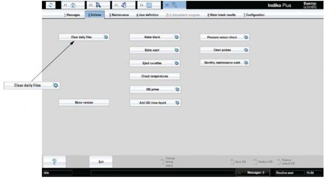 1.選擇 F5> Actions(操作)>Clear daily files(清除日常文件)。