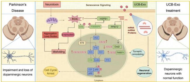 人臍血血漿外泌體(UCB-Exos)具有傷口修復、逆轉(zhuǎn)肝纖維化和肺損傷的作用。本研究旨在探討UCB-Exos對MPTP 誘導的帕金森。≒D)模型小鼠多巴胺能神經(jīng)元的保護作用及其調(diào)節(jié)MAPK P38和ERK1/2信號通路的分子機制。