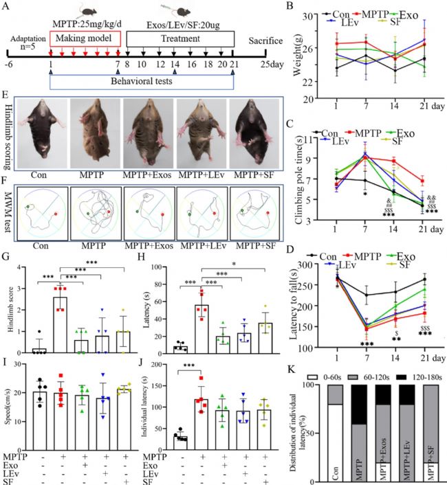UCB-Exos 可改善 MPTP 誘導的 PD 小鼠模型的運動功能障礙和認知能力下降