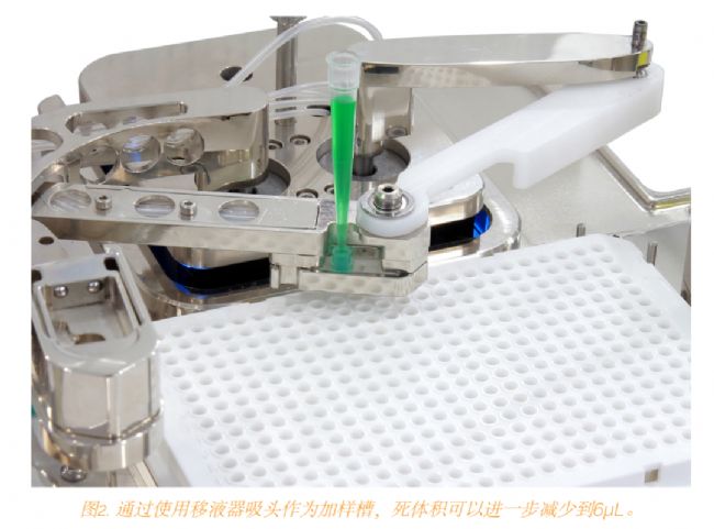 為了盡量減少死體積,試劑可以直接插入微流控芯片。通過使用移液器吸頭作為加樣槽,死體積可以進(jìn)一步減少到6μL。這一功能非常適合分配昂貴的PCR試劑。