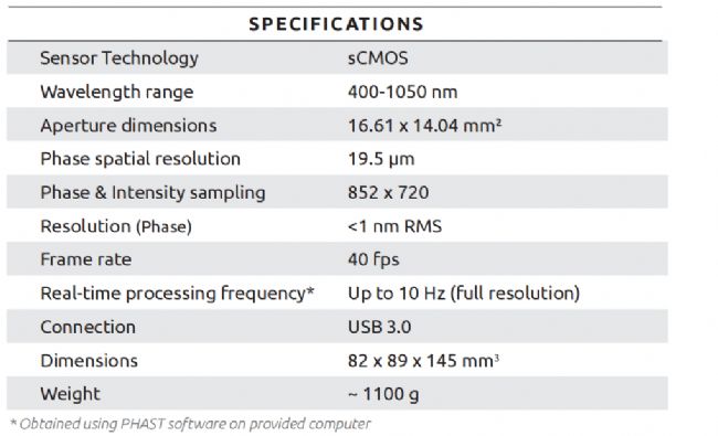 1.亞波長空間尺度下的高精度測量:Phasics的波前傳感器不僅具備優(yōu)于2nm RMS的光程差測量精度,還采用了便捷的C端接口設計,能夠直接連接顯微鏡,實現即插即用的快速安裝和亞波長級別的空間分辨率。2.偏振無關性:Phasics的波前傳感器支持全面的偏振測量,能夠精確分析超表面在不同偏振狀態(tài)下的光學響應,從而更好地評估器件的實際性能。3.多光譜測量能力:其產品能夠在多個波長范圍內進行高精度測量,確保超透鏡在多光譜應用中的性能表現。4.環(huán)境穩(wěn)定性:Phasics的傳感器能夠在不穩(wěn)定的環(huán)境條件下保持精確測量,消除環(huán)境影響對測量結果干擾,確保數據可靠性。