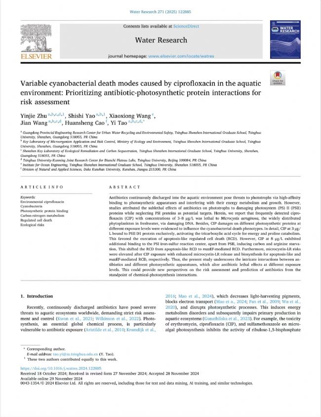 水體中環(huán)丙沙星引起的藍藻死亡模式的變化環(huán)境:優(yōu)先考慮抗生素與光合蛋白的相互作用