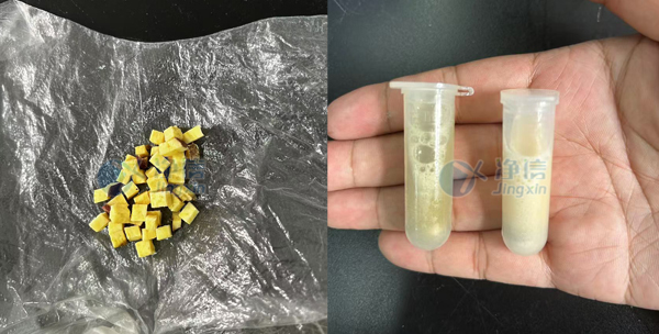 我們可以看到,番薯已經(jīng)研磨完全,可以進(jìn)行后續(xù)離心純化。儀器自帶冷凍,可以很好的保持RNA活性。采用一次性,無菌無酶的的研磨管和研磨珠,冷凍研磨儀可以很好的避免樣品污染,一批可以處理的樣品多樣,可以高效快速的進(jìn)行批量RNA提取。