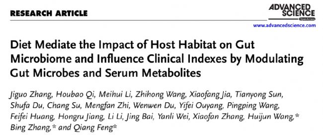 Zhang J, et al. Diet Mediate the Impact of Host Habitat on Gut Microbiome and Influence Clinical Indexes by Modulating Gut Microbes and Serum Metabolites. Adv Sci. 2024.