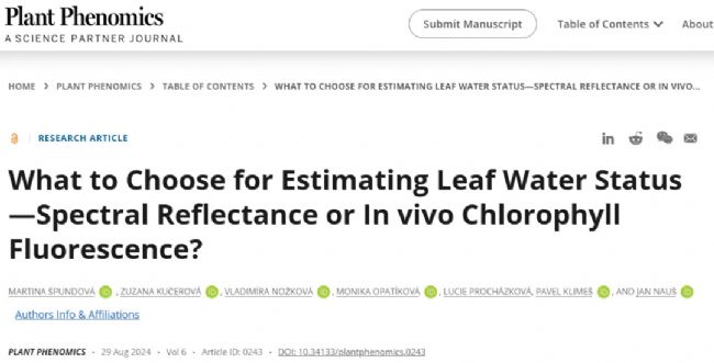 2024年8月,Plant Phenomics 在線發(fā)表了Palacký University題為What to Choose for Estimating Leaf Water Status—Spectral Reflectance or In vivo Chlorophyll Fluorescence? 的研究論文。